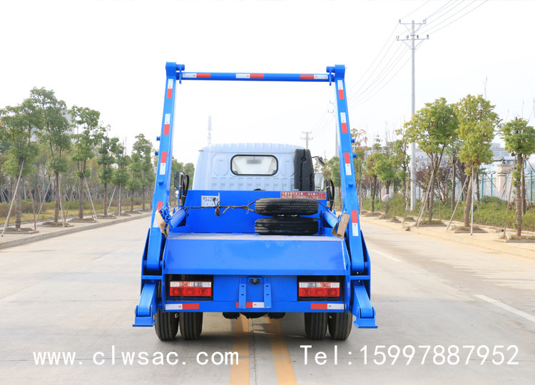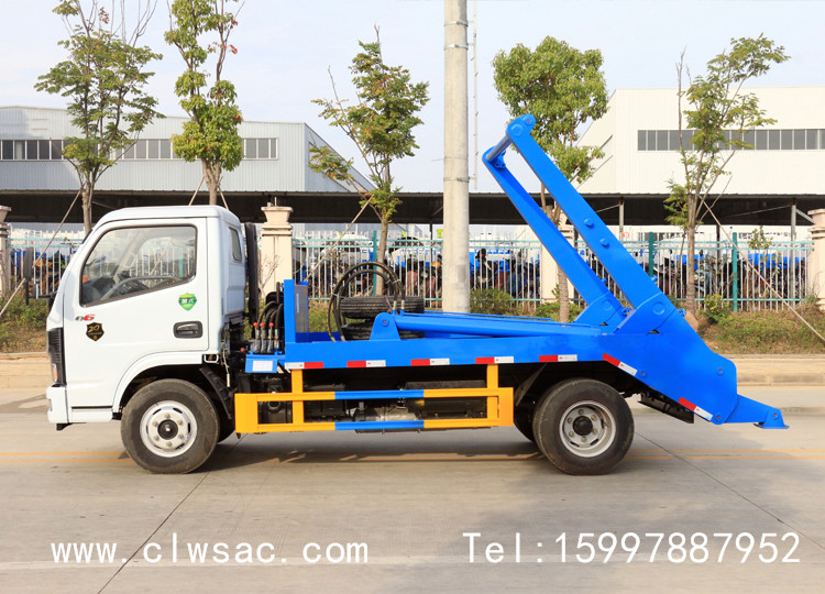该车驾驶舒适、操纵方便、机动灵活、可靠性高。摆臂式垃圾车的特点是可将地上、地下垃圾箱内的垃圾及垃圾箱一同吊至车上运走同时可自卸,降低了工人的劳动强度。该垃圾车的收运方式是目前世界上广泛采用的垃圾收运方式,可以实现一车多箱,大大降低了配备成本和空间等等;其专用装置的功能均以汽车发动机为动力,通过液压机构手动或电控来实现。车辆的箱体采用优质炭钢板焊接,具有强度高、重量轻、不产生二次污染等优点。