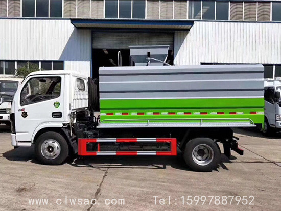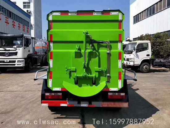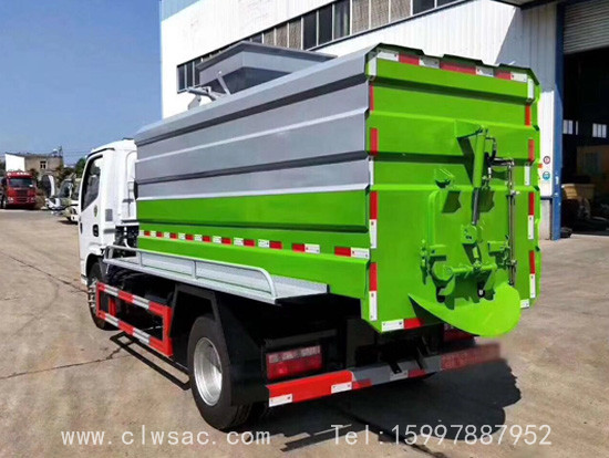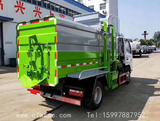 上装配置:罐体采用Q235优质碳钢板制作,容积:5立方米,简易方形厢体,采用Q235碳钢制作,边3底4,拉杆式提升机(可挂120L和240L垃圾桶),厢体下部液压油缸举升卸料,后门单油缸开启。