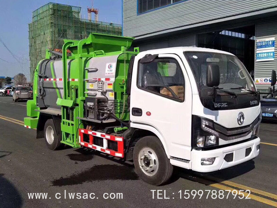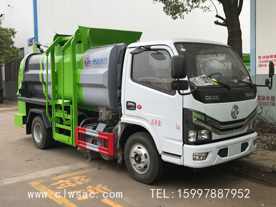 上装配置:容积约5立方,方弧形厢体,边4底5板材,链条式提升机(可挂120L和240L垃圾桶),后门油缸液压开启,厢体内部安装推铲卸料及固液分离装置,标配厢体不带举升;厢体前部隔一个约300L水箱,带清洗机及清洗卷盘;驾驶室内外电动控制。
