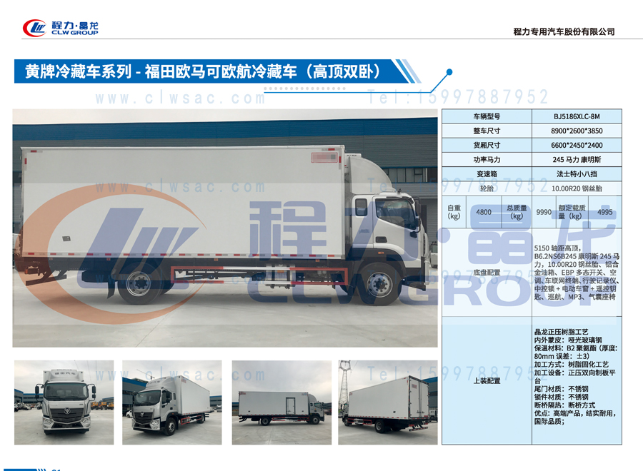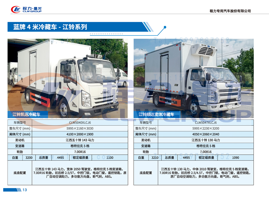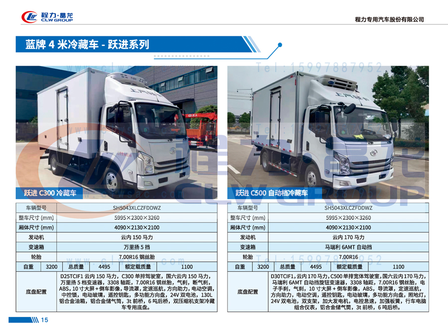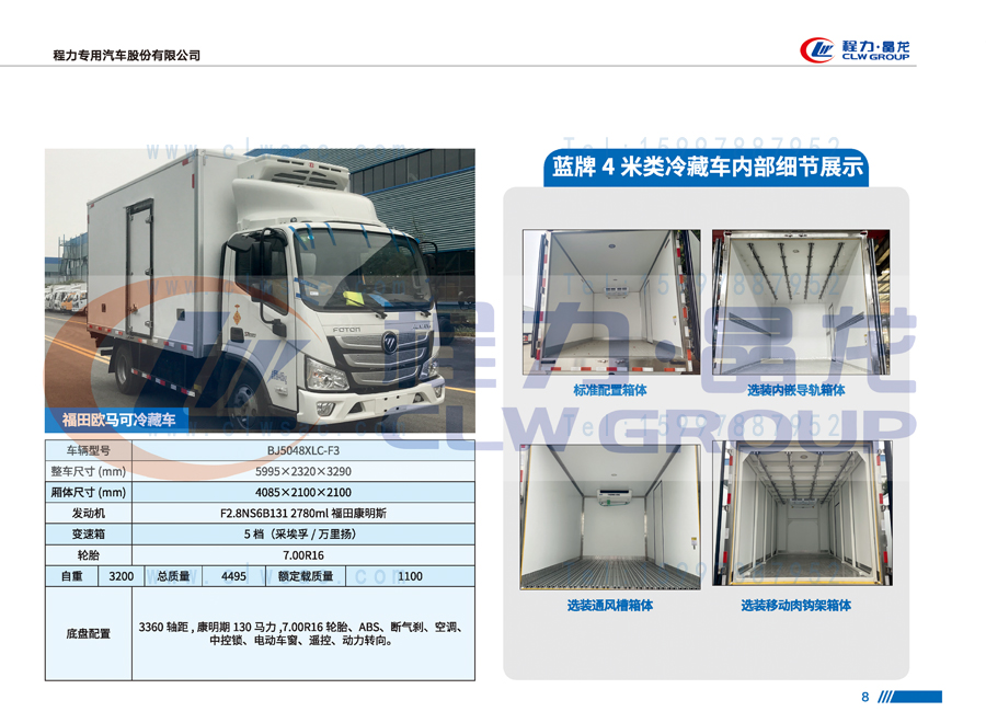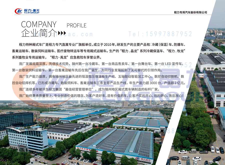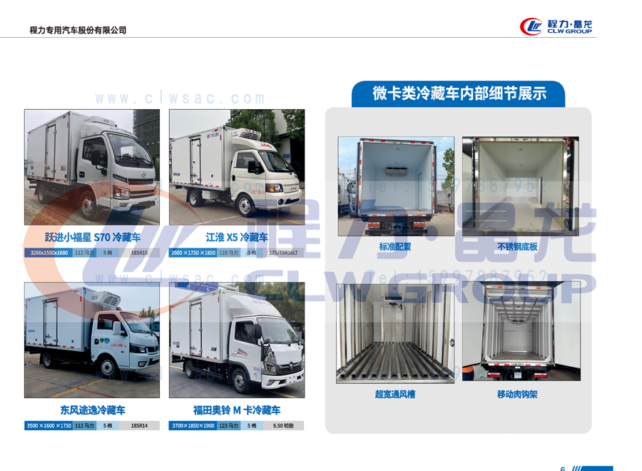 程力冷藏车产品图册 程力冷藏车产品图册 作者:clwsac 发布时间:2023/8/14 14:18:30 浏览热度:次 程力冷藏车产品图册 产品底盘型号:程力冷藏车图册 产品吨位:0 装载质量: 产品报价: 联系人:王经理 咨询热线:15997887952 在线交谈:1930804793 | 在线留言 | 联系方式 您给我一个信任、我还您满意,全国销售热线:15997887952 更多程力冷藏车产品资料配置,价格请致电15997887952 上一产品:程力产品图册 下一产品:没有资料 购车服务 1、服务承诺:产品销售后一年或3万公里免费维修,超过一年,只收取配件费。 我们承诺,公司对产品负责,服务让顾客满意。真诚、贴心、到位,让您买着放心,用着舒心! 2、您如果打算购车一定要看这里:我们是国家发改委指定专用汽车生产企业,保证车辆品质,购车签定正规合同,车辆手续全,售后服务好,订车流程如下: 用户购车常见疑问 >> 详细了解订车流程 >> 查询公司路线>> 公司联系方式