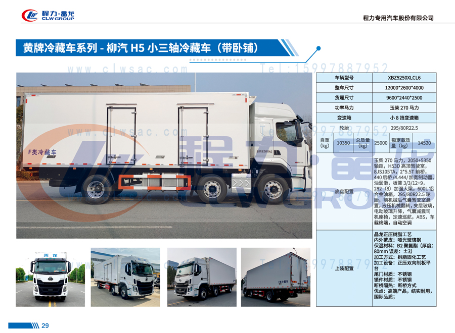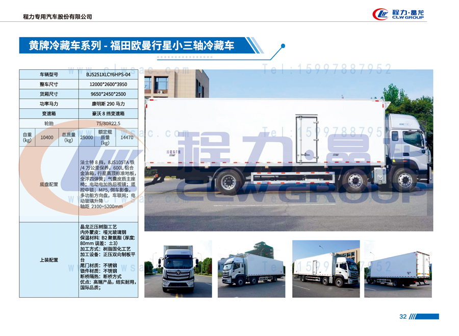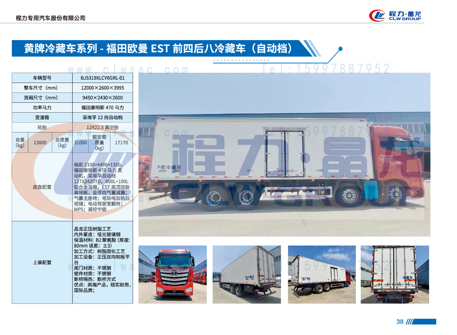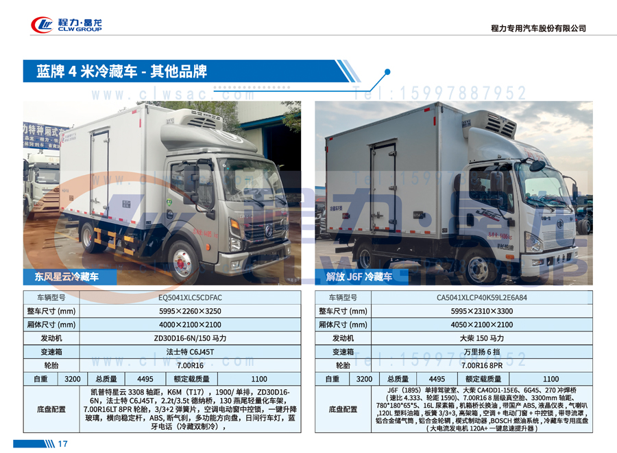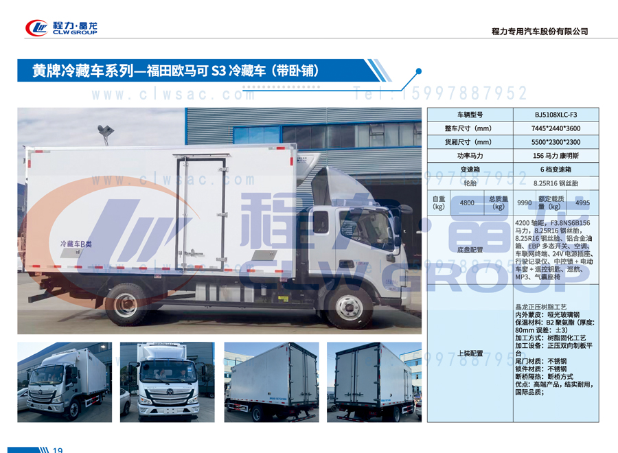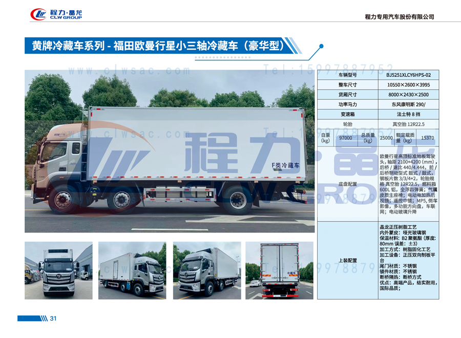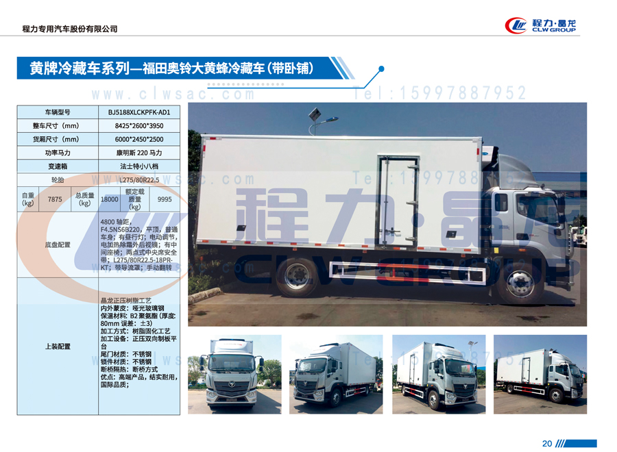程力冷藏车产品图册 程力冷藏车产品图册 作者:clwsac 发布时间:2023/8/14 14:18:30 浏览热度:次 程力冷藏车产品图册 产品底盘型号:程力冷藏车图册 产品吨位:0 装载质量: 产品报价: 联系人:王经理 咨询热线:15997887952 在线交谈:1930804793 | 在线留言 | 联系方式 您给我一个信任、我还您满意,全国销售热线:15997887952 更多程力冷藏车产品资料配置,价格请致电15997887952 上一产品:程力产品图册 下一产品:没有资料 购车服务 1、服务承诺:产品销售后一年或3万公里免费维修,超过一年,只收取配件费。 我们承诺,公司对产品负责,服务让顾客满意。真诚、贴心、到位,让您买着放心,用着舒心! 2、您如果打算购车一定要看这里:我们是国家发改委指定专用汽车生产企业,保证车辆品质,购车签定正规合同,车辆手续全,售后服务好,订车流程如下: 用户购车常见疑问 >> 详细了解订车流程 >> 查询公司路线>> 公司联系方式