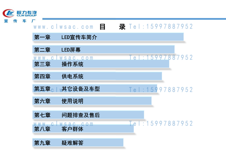 程力LED宣传车产品图册 程力LED宣传车产品图册 作者:clwsac 发布时间:2023/8/19 14:18:15 浏览热度:次 程力LED宣传车产品图册 产品底盘型号:程力LED宣传车图册 产品吨位:0 装载质量: 产品报价: 联系人:王经理 咨询热线:15997887952 在线交谈:1930804793 | 在线留言 | 联系方式 您给我一个信任、我还您满意,全国销售热线:15997887952 更多程力LED宣传车产品资料配置价格,请致电:15997887952 上一产品:程力消防车产品图册 下一产品:没有资料 购车服务 1、服务承诺:产品销售后一年或3万公里免费维修,超过一年,只收取配件费。 我们承诺,公司对产品负责,服务让顾客满意。真诚、贴心、到位,让您买着放心,用着舒心! 2、您如果打算购车一定要看这里:我们是国家发改委指定专用汽车生产企业,保证车辆品质,购车签定正规合同,车辆手续全,售后服务好,订车流程如下: 用户购车常见疑问 >> 详细了解订车流程 >> 查询公司路线>> 公司联系方式