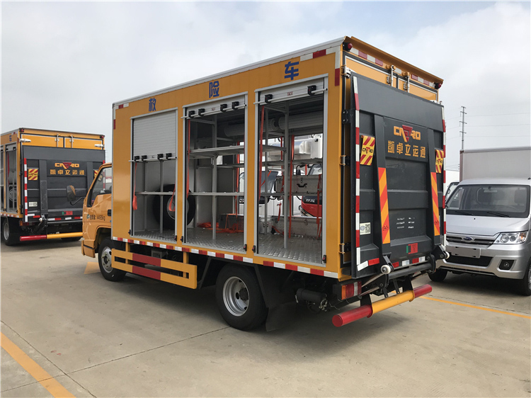 湖北程力专用汽车股份有限公司为了应对市场需求,在户外发生紧急情况需要救援时,程力公司与江铃底盘合作开发一款新型的多功能移动救队险车,同时也可以根据用户的实际情况需求在车厢内安装置物架,工作平台,救险专用工具等装置。