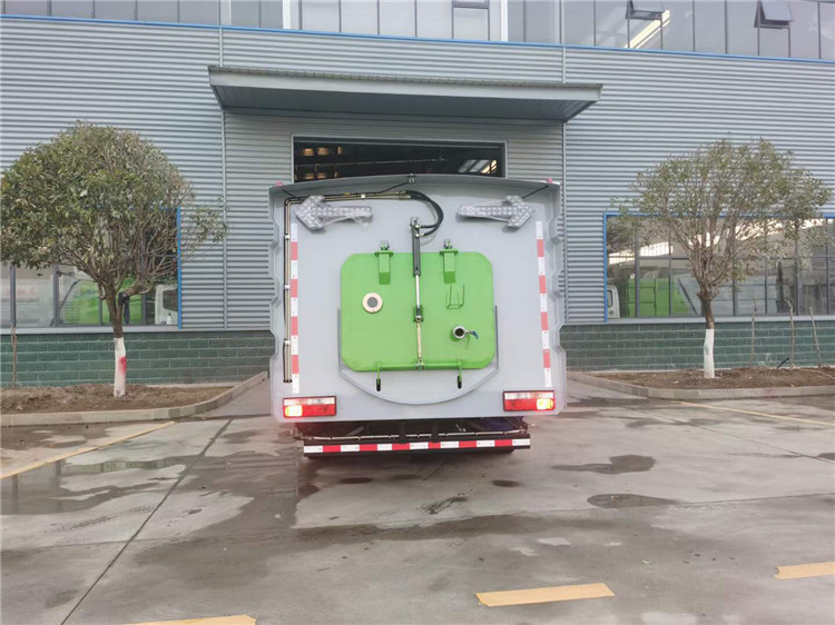 6)具备倒车保护装置,在作业过程中如遇紧急倒车,智能化的控制系统会自动停止作业并收回扫盘、吸盘和侧喷杆;具有防止举升垃圾箱翻车保护;具有检修安全保护。
