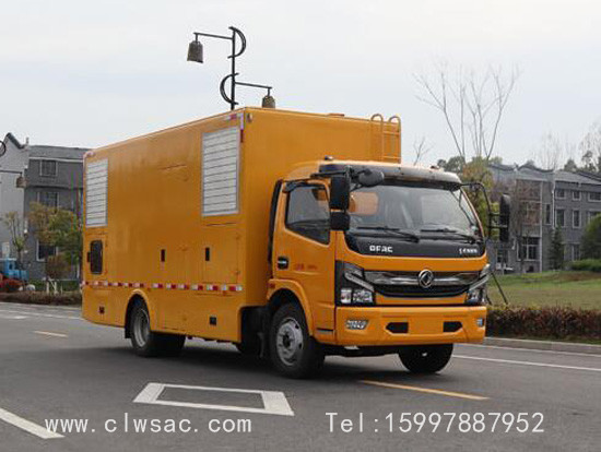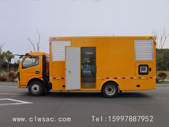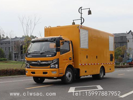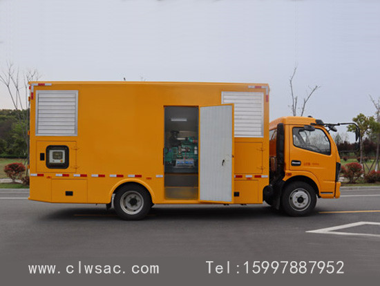 备注:该车厢内装有发电机组,电缆绞盘,液压(机械)支腿动力电缆,照明系统等设施,主要用于处理突发事件的应急抢险供电;车厢顶部封闭不可开启;防护材料:侧后防护由车身结构代替,后防护下边缘离地高:450mm;整车长/轴距对应关系为(mm):7250/3800,7400/3950,7500/4050,7550/4100,7850/4400;ABS型号/厂家:ABS型号:ABS/ASR-24V-4S/4M,厂家:襄阳东风隆诚机械有限责任公司;随底盘选装驾驶室.