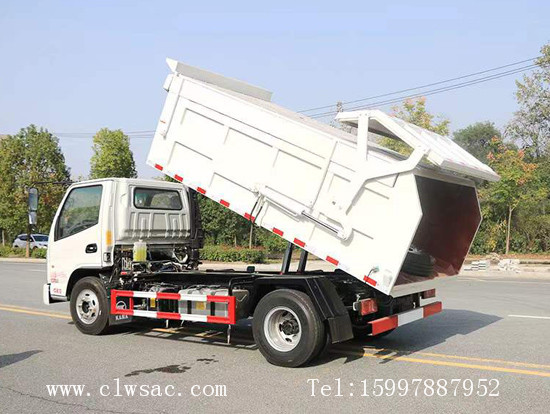 对接式垃圾车的收运方式是目前国内广泛采用的垃圾压缩站垃圾转运方式,可以实现一车多站,大大降低了配 备成本和空间等等;其专用装置的功能均以汽车发动机为动力,通过液压机构手动或电控、 气控来实现。车辆的箱体采用优质炭钢板全密封焊接结构,具有强度高、重量轻,不产生 二次污染等优点。