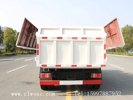 该车液压油缸动作采用手动液压多路阀控制,液压多路阀控制油缸动作。操作简单可靠,便于维修。液压系统由油箱及过滤系统、油泵、多路换向阀、单向节流阀、油缸、油管等组成。系统的动力来源于发动机,通过取力器将动力分出,取力器带动齿轮泵工作。齿轮泵经吸油滤油器将液压油箱中的液压油吸入,多路阀(位于驾驶室外后、车箱前部)供油。多路阀工作时使后门油缸、自卸油缸产生动作,液压油缸不工作时,液压油经过多路阀直接回油箱。