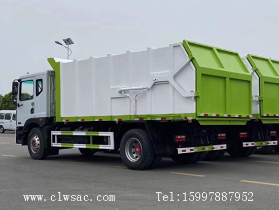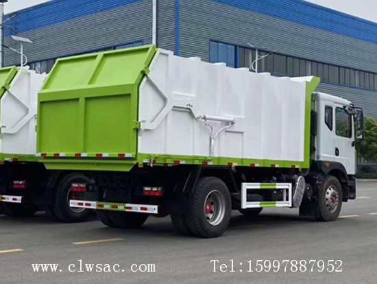 对接式垃圾车的收运方式是目前国内广泛采用的垃圾压缩站垃圾转运方式,可以实现一车多站,大大降低了配 备成本和空间等等;其专用装置的功能均以汽车发动机为动力,通过液压机构手动或电控、 气控来实现。车辆的箱体采用优质炭钢板全密封焊接结构,具有强度高、重量轻,不产生 二次污染等优点。