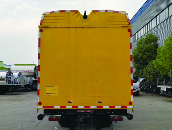 货箱:材料为Q235B武钢碳钢板,货箱由底架和侧围板组成,通过U型螺栓与底盘大梁连接,可用于装载工具、配件等物品。可方便施工操作。