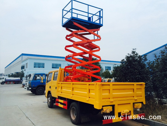 剪叉式高空作业平台:能够在不同高度工作状态下快速、慢速行走,可以在空中方便的操作平台连续完成上下、前进、后退、转向等工作。剪叉式液压升降平台高空作业车,带有小货箱可随车携带高空作业所需的工具,也可装载一些货物,实用性强。此车上蓝牌,可进市区作业。作为高度为8米和10米。