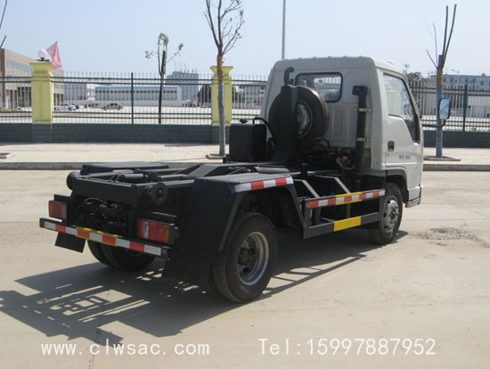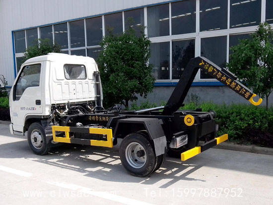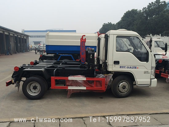 勾臂式垃圾车又称为车厢可卸式垃圾车被广泛适用于城市街道垃圾处理,可一车配备多个垃圾箱,带自卸功能,液压操作,方便倾倒。该车的箱体部分完全由液压系统来控制。