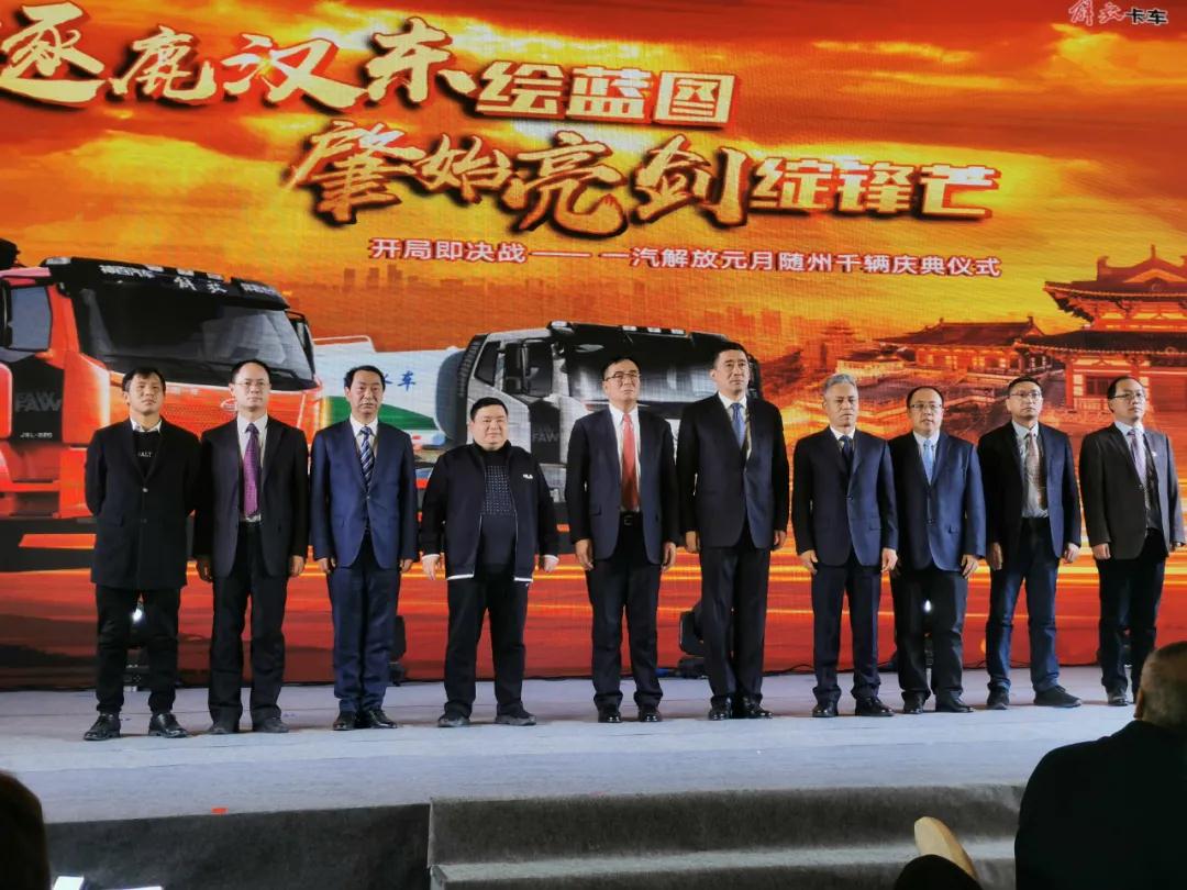 同期,一汽解放集团与程力汽车集团及随州的销售精英、部分改装厂企业家代表在随州碧桂园国际大厅隆重举行了一汽解放元月千辆庆典仪式。