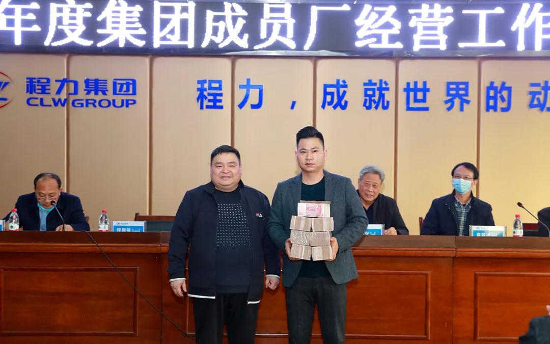 会议兑现了集团公司的奖励政策,集团公司总经理程阿罗亲自为获得特等奖的凯力公司梁俊总经理颁奖,凯力公司2020年完成产值2.8亿元,获得奖励300多万元,先进奖励128万元。