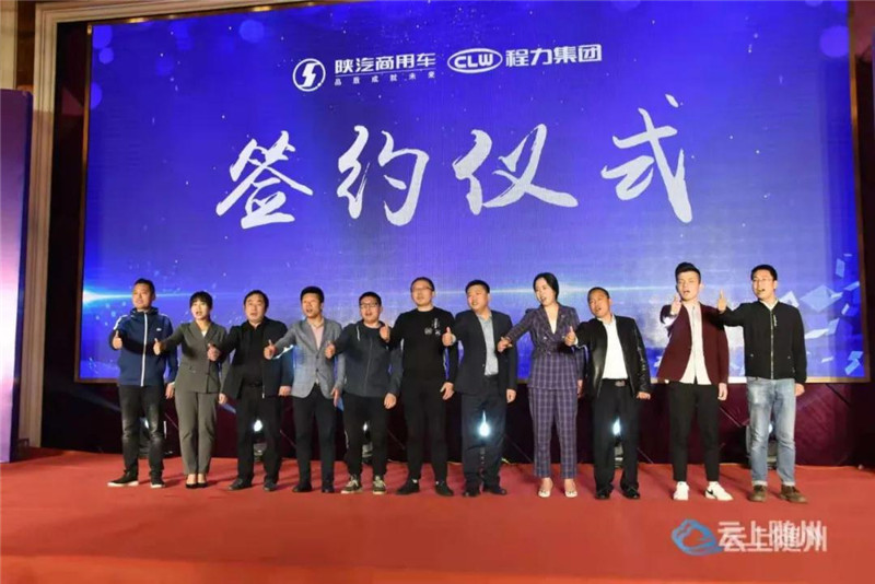 程力陕汽商用车底盘事业部负责人高波宣布了新产品价格和团购政策,与合作代表进行了签约仪式,并合影纪念。