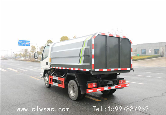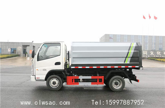 备注:1、卸料方式为后卸。2、整车长度/轴距对应关系为(mm):4820/2800,4620/2600。3、ABS型号CM4YL,生产企业广州瑞立科密汽车电子股份有限公司。4、发动机及油耗值(L/100Km)为:LJ4A15Q6/7.3。5、专用装置:挂桶机构,主要用于城镇环卫桶装生活垃圾的收集与运输。6、选装上装外观样式。