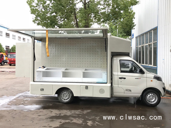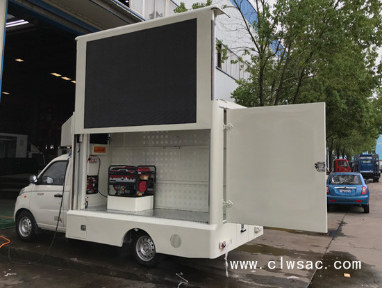 该车采用福田祥菱系列底盘,加装厢体、户外LED全彩屏、滚轴灯箱、音响、功放、发电机或电池组、工况电脑、通风系统等改装而成,安装柳州五菱,全柴等发动机,排放达到国五标准。