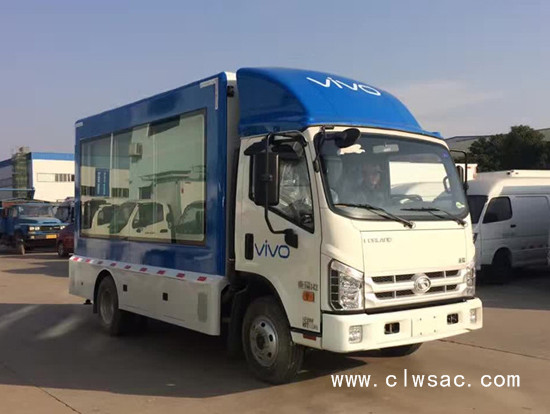 该车采用福田康瑞系列底盘,加装厢体、户外LED全彩屏、滚轴灯箱、音响、功放、发电机或电池组、工况电脑、通风系统等改装而成,安装全柴等发动机,排放达到国五标准。