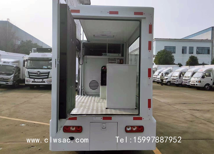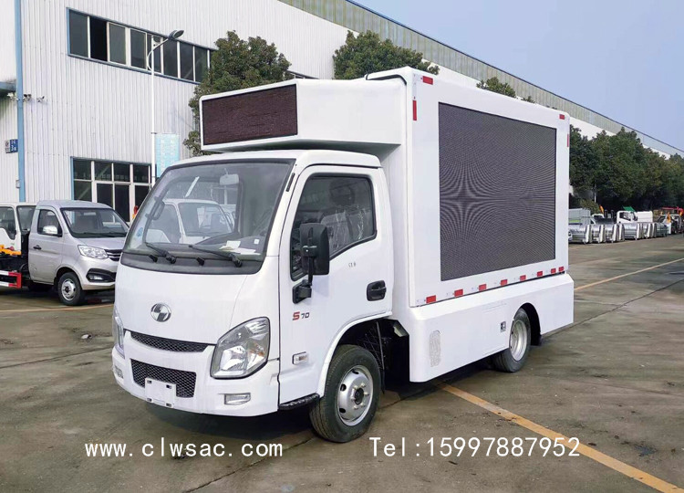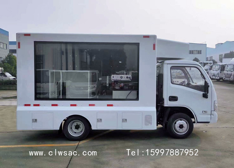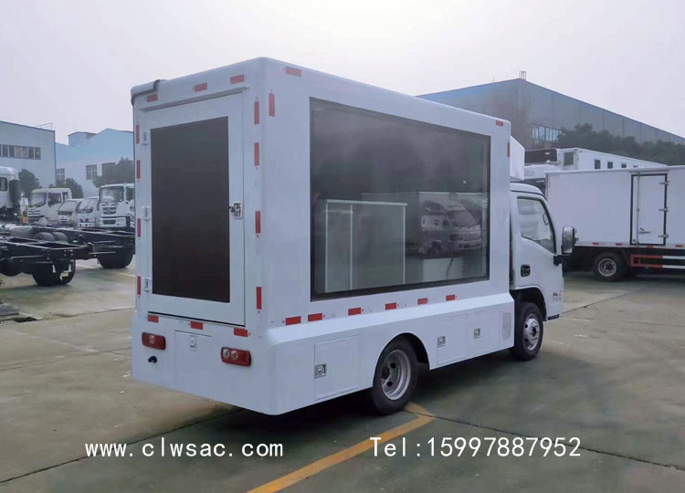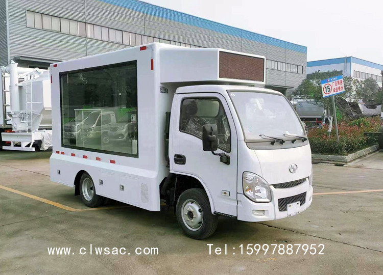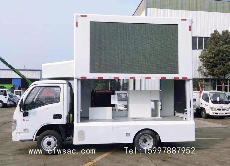 该车采用跃进后双轮系列底盘,加装厢体、户外LED全彩屏、滚轴灯箱、音响、功放、发电机或电池组、工况电脑、通风系统等改装而成,安装柳州五菱发动机,排放达到国六标准。