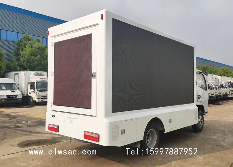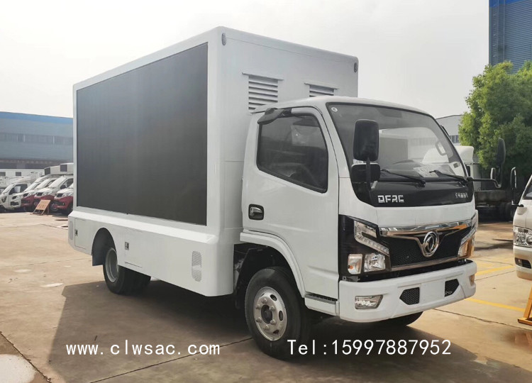 该车采用东风多利卡系列底盘,加装厢体、户外LED全彩屏、滚轴灯箱、音响、功放、发电机或电池组、工况电脑、通风系统等改装而成,安装朝柴,云内,全柴等发动机,排放达到国六标准。