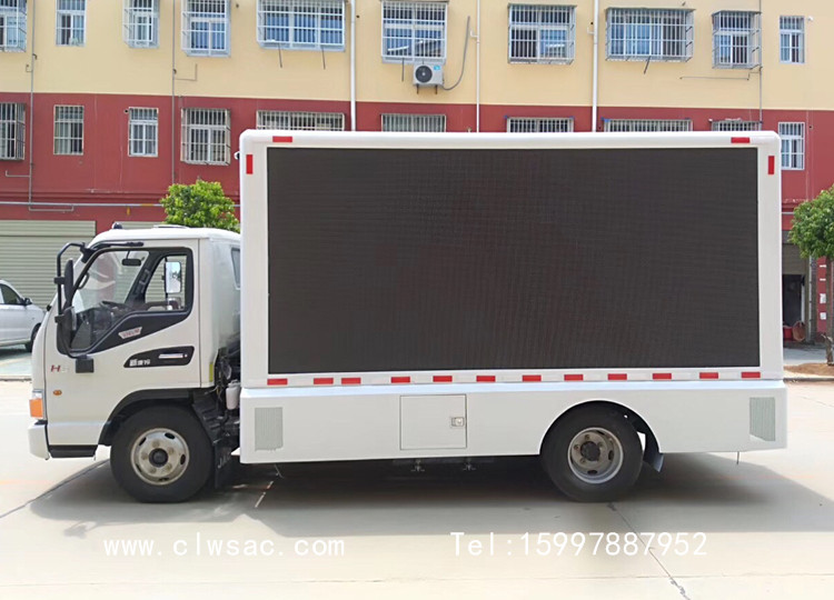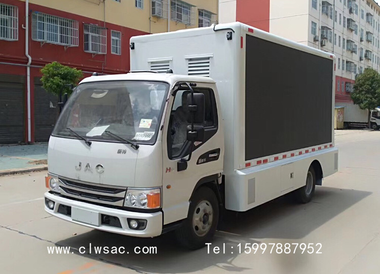 该车采用江淮多利卡系列底盘,加装厢体、户外LED全彩屏、滚轴灯箱、音响、功放、发电机或电池组、工况电脑、通风系统等改装而成,安装朝柴,云内,全柴等发动机,排放达到国六标准。
