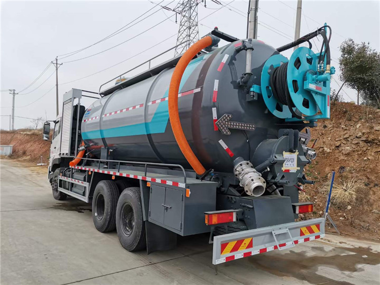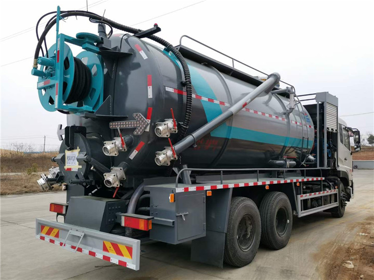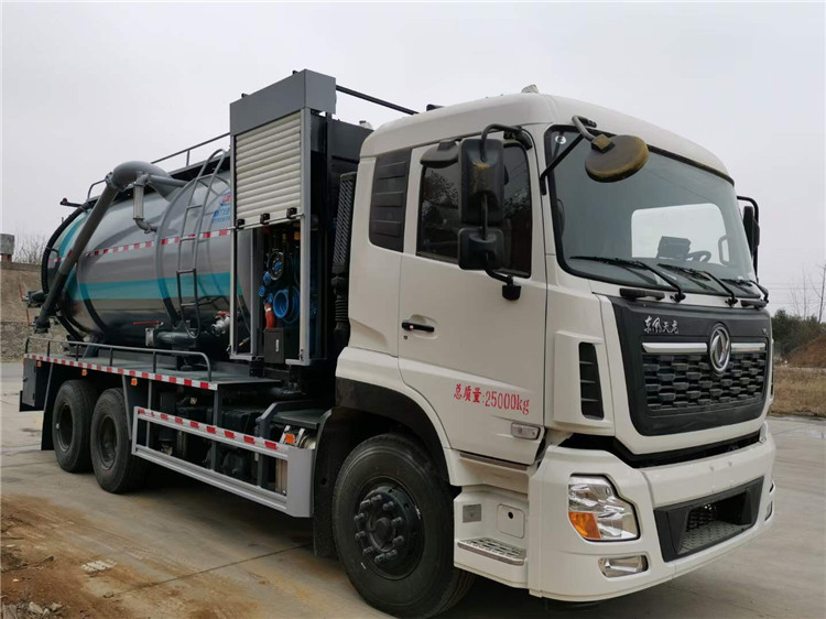湖北程力东风天龙清洗吸污车推荐:东风天龙后八轮清洗吸污车,DDI350马力发动机,11.00钢丝胎,上装配置:罐体容积约23方,8m碳钢板材,清水约5方,其余为吸污,两仓球阀互通。两仓中间用封头,品浮330流量高压清洗泵,配60米高压管。选装安装山东昊赛42水环泵配420马力副发。卷盘装后封头180度旋转,后封头液压打开。后封头上一个600水泥盖放污,可液压开启,侧面一个6寸不锈钢偷排阀,后封头一个6寸不锈钢出口,一个100寸进口直通罐顶,罐内铺不锈钢板,加强型车架,自卸车设计,罐体尾部箭头灯,带一个视污窗口。带8米吸污管。