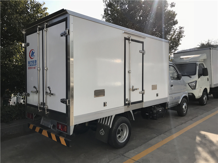 程力公司生产的小型长安冷藏车,采用长安公司底盘,东安115马力发动机,轴距:3060mm,冷藏车整车尺寸:4970*1710*2490,冷藏车厢体内部尺寸:2900*1560*1580mm,1.5 排量/175R14 轮胎/手动玻璃。冷藏车厢体保温层厚度80mm。内外玻璃钢工艺,底板采用花纹铝板,不锈钢门锁。