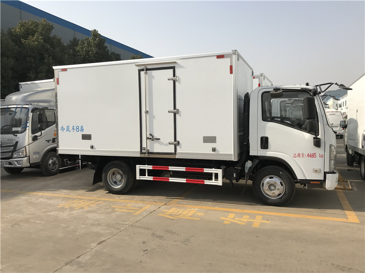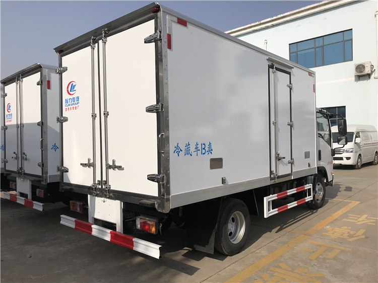 程力专用汽车股份有限公司与庆铃五十铃公司合格研发的程力五十冷藏车,整车型号CLW5040XLCQ6,采用五十铃KV100底盘,3360轴距,700P驾驶室,120马力五十铃4KH1CN6HB发动机,五十铃6档变速箱,空调,方向助力,多功能液晶仪表盘,前桥3吨,后桥5吨,ABS,断气刹或油刹,驾驶室可翻转。