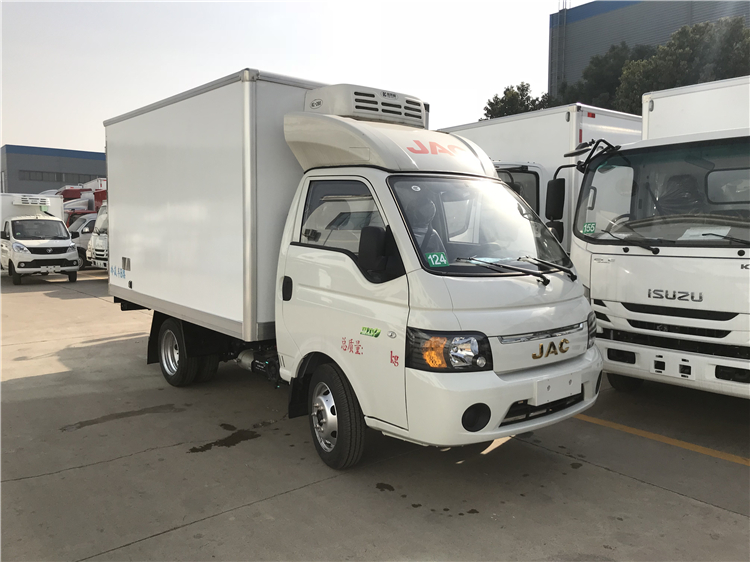 程力江淮康铃X5蓝牌冷藏车配置参数介绍:整车型号:HFC5030XLCPV4E2B4S,采用江淮高端轿卡国六汽油机江淮康铃X5底盘,底盘型号:HFC1030PV4E2B4S,轴距2850mm,康铃X5,单排1626宽,柳汽LJ4A15Q6(柳汽113匹马力),星锐5档变速箱,3吨后桥,175/75R16LT后双胎,130*50*4大梁,油刹,电动门窗,中控锁,电子助力,ABS,原厂空调,整车尺寸5660*1780*2710mm,货厢尺寸:3500*1610*1750mm,厢体材质:内外玻璃钢,中间聚胺脂保温层,底板花纹铝防滑板,后双开门,不锈钢锁件,选装零下5度,零下10度,零下15度制冷机组。