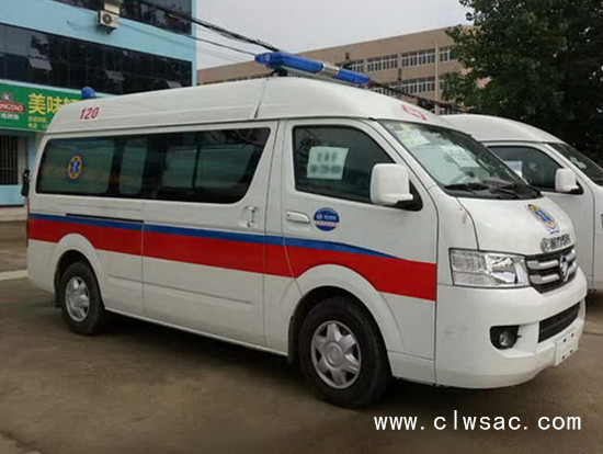 福田G7救护车型号BJ5039XJH-C5,福田风景G7救护车采用福田公司生产的原装底盘,G7豪华车身,5档变速器,前空调,暖风,感载比例阀。总质量3 02吨,整备质量:1 885吨,驾驶室额定载客2-6人。整车外形尺寸:4840*1695*2175,2435mm,轴距:2 57m,最高车速:135km h。配195R15C钢丝胎,前轮距1 47米,后轮距:1 465米。北汽福田牌正宗国五发动机,发动机型号:4Q20M,发动机排量:1198ml,发动机功率:95kw。 驾驶室内部空间宽敞,配备空调、点烟器、收音机等装置。