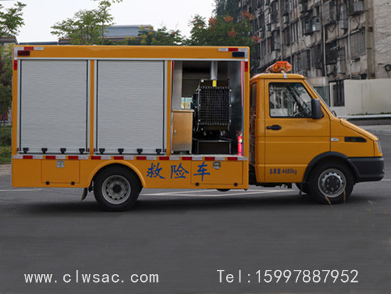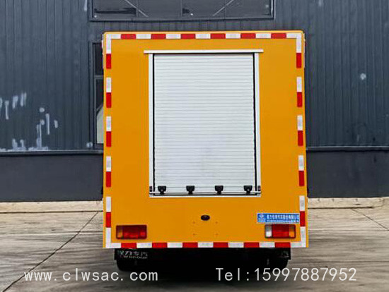 选装行李架、爬梯、车顶工作台;选装不同形状、结构的警示灯;选装中隔断(可选择开门)、车身两侧可选开上掀门、盲窗、侧开门;花纹铝板;加装设备工具柜、配电箱、发电机组、水泵、电焊机、空压机等线路安装外接电源系统、(室内灯光照明、探照灯、高杆照明灯等);绕线盘,还可根据用户不同需求加装不同的维修抢险设备、车身制作专用图案或标识。