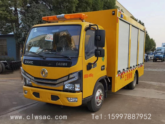 程力工程救险车选装配置:选装行李架、爬梯、车顶工作台;选装不同形状、结构的警示灯;选装中隔断(可选择开门)、车身两侧可选开上掀门、盲窗、侧开门;花纹铝板;加装设备工具柜、配电箱、发电机组、水泵、电焊机、空压机等线路安装外接电源系统、(室内灯光照明、探照灯、高杆照明灯等);绕线盘,还可根据用户不同需求加装不同的维修抢险设备、车身制作专用图案或标识。