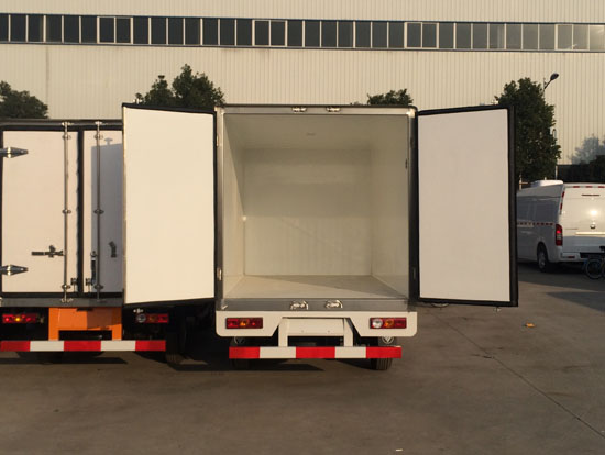 厢体:内外玻璃钢,花纹铝底板,8cm聚氨酯保温,不锈钢门锁件,配后双开门,-5度制冷机组