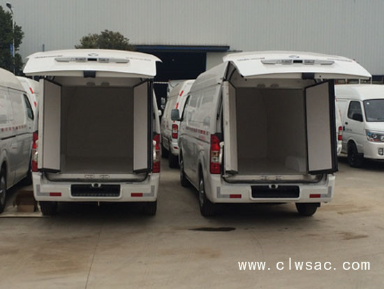 厢体:内外玻璃钢,花纹铝底板,8cm聚氨酯保温,不锈钢门锁件,配后双开门,-5度制冷机组