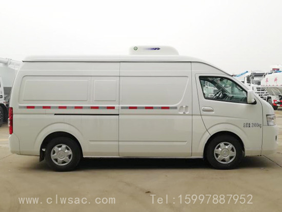 厢体:内外玻璃钢,花纹铝底板,8cm聚氨酯保温,不锈钢门锁件,后开门,-5度制冷机组