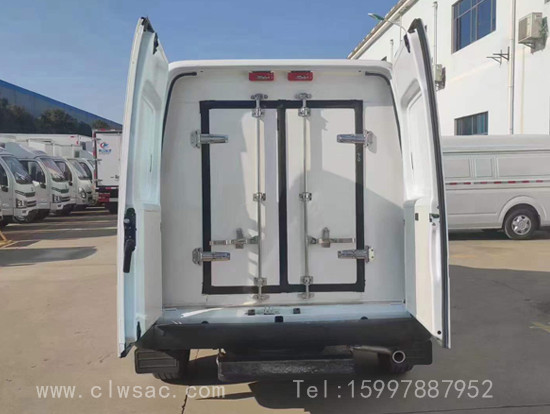厢体:内外玻璃钢,花纹铝底板,8cm聚氨酯保温,不锈钢门锁件,后开门,-5度制冷机组