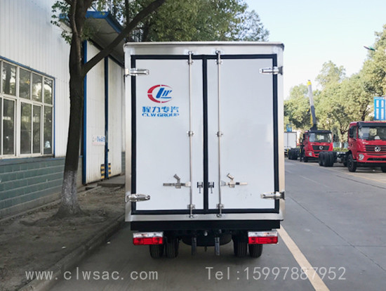 厢体:内外玻璃钢,花纹铝底板,8cm聚氨酯保温,不锈钢门锁件,配后双开门,-5度制冷机组