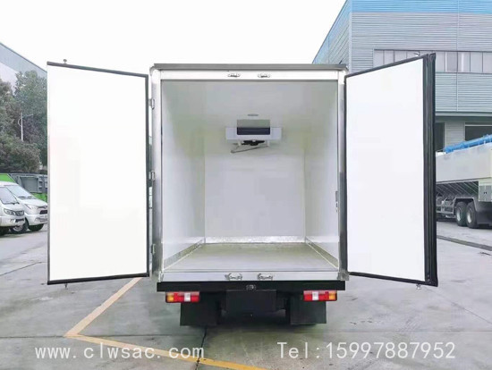 厢体:内外玻璃钢,花纹铝底板,8cm聚氨酯保温,不锈钢门锁件,配后双开门,-5度制冷机组