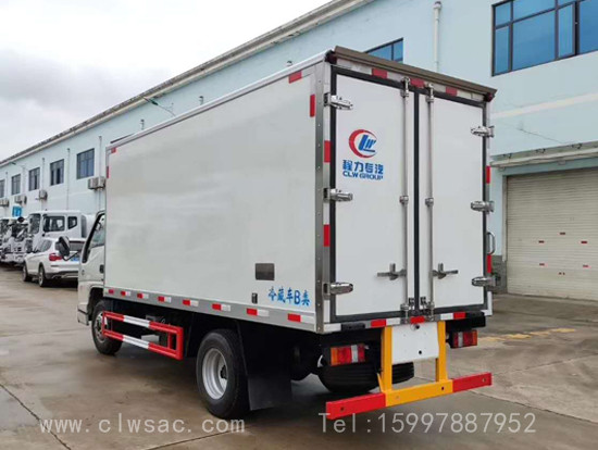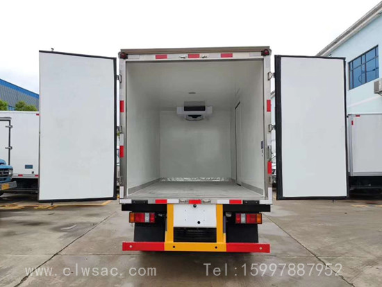 厢体:内外玻璃钢,花纹铝底板,8cm聚氨酯保温,不锈钢门锁件,配后双开门,-5/-15度制冷机组
