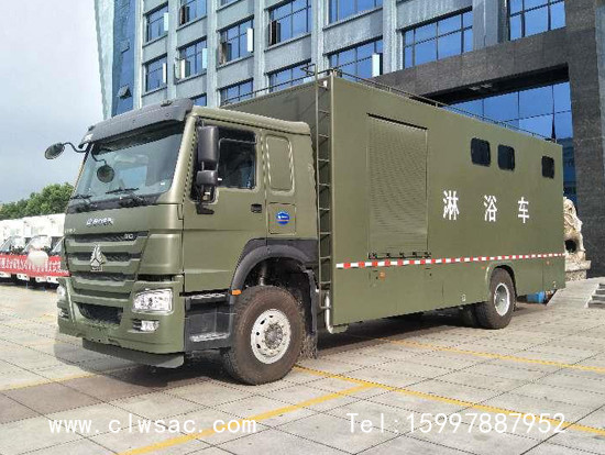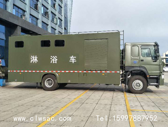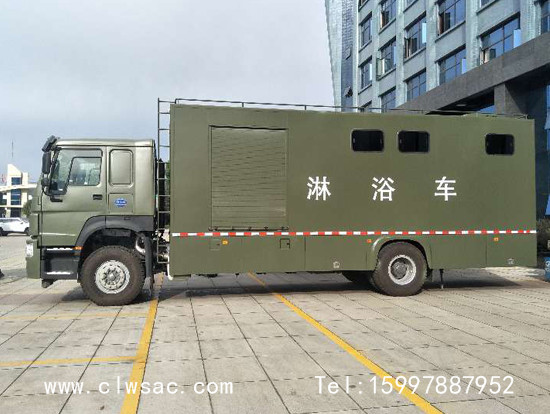 自行式淋浴车是根据部队的需要研制的洗浴装备,具有淋浴设施,淋浴水加热装置、水净化处理设备和供电保障能力的自行式洗浴专用车辆。适用于野外情况下对人员提供洗浴保障。