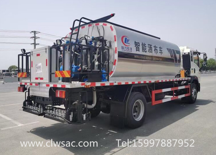沥青洒布车是一种专业洒布乳化沥青、稀释沥青、热沥青、高粘度改性等沥青的智能化自动化高科技产品。用于修筑高等级公路沥青路面底层的透层油、防水层、粘结层的洒布。该洒布车由汽车底盘、沥青罐体、沥青泵送及喷洒系统、导热油加热系统、液压系统、燃烧系统、控制系统、气动系统、操作平台构成。该车操作简便,在吸收国内外同类产品各项技术的基础上,增加了确保施工的质量技术含量和突出改善施工条件、施工环境的人性化设计。其合理可靠的设计确保了沥青的洒布均匀度,计算机控制稳定可靠,整车技术性能已达到世界先进水平。该车经过我公司各方面的改善可以在更恶劣的条件下进行工作。