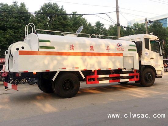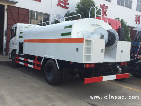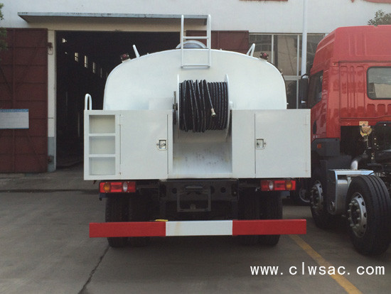 配有高压水泵的水罐车,清洗城市下水道的沉积物,疏通下水道。也可用于清洗工业排液管道、壁面等,该车可加装洒水功能兼作洒水、运水和冲洗公路用,紧急时可用于救火。