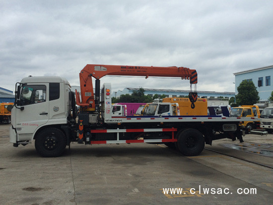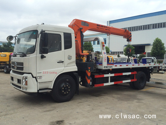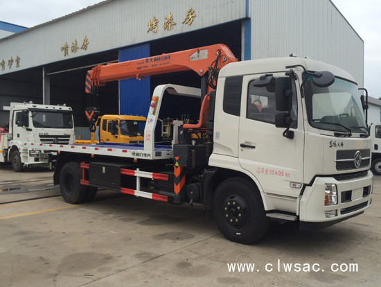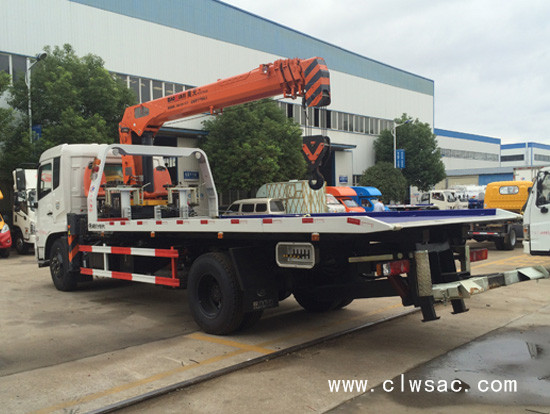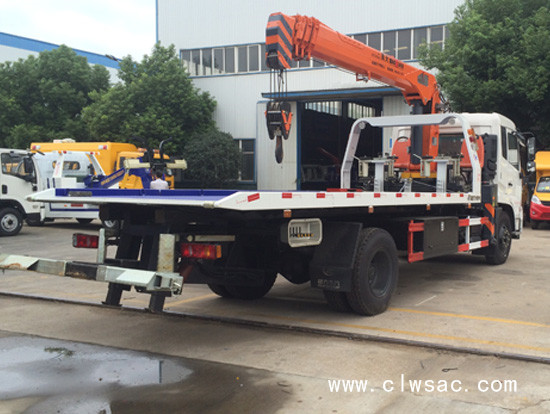 东风天锦平板带吊机多功能清障车