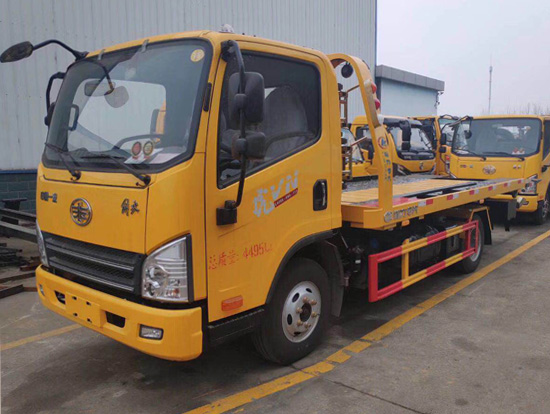 道路清障车,又称拖车,事故救援车,由底盘、起重装置、托举牵引装置、液压系统、电控系统、车体与工具箱等组成,是在专用载货底盘基础上配装托举、拖曳、起重等装置。具有起吊、拽拉和托举牵引等多项功能,一拖二清障车可同时拖牵两辆事故车辆,适用于高速公路、城市道路的清障救援作业。