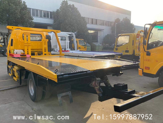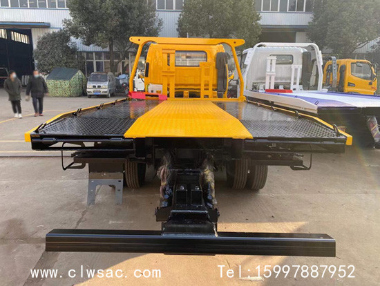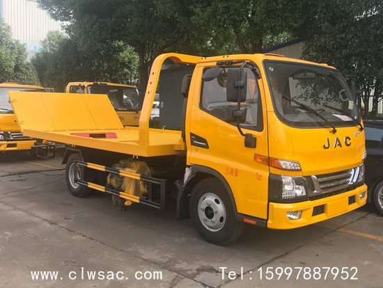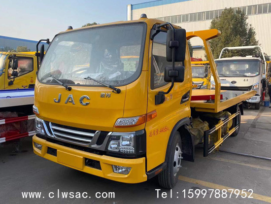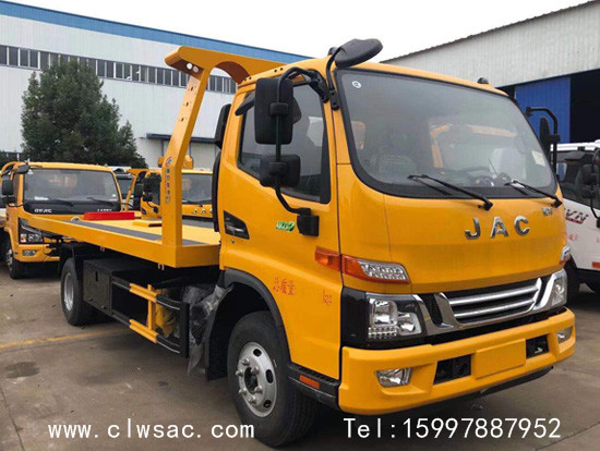 江淮骏铃V5驾驶室,单排1900宽,安康132马力,星锐6档变速箱,断气刹,4.5吨后桥,7.00R16轮胎,180*6大梁,,电动门窗,中控锁,遥控钥匙,定速巡航,多功能方向盘,后视镜加热,原装空调。3吨上装,4吨卷扬,21米钢丝绳,3吨后拖臂,底板为花纹板(可选冲压板),板长4.2米,尾部液压伸缩板,板长1.3米,双侧联动操作,配四根捆绑带,辅助小车一套,L型抱胎架一对,工具箱一个,LED工作照明灯一对,其余标配。