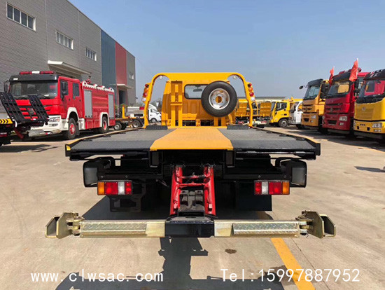 江铃顺达新款驾驶室,江铃115马力发动机,5档变速箱,7.00R16钢丝胎,油刹,带方向助力,原装空调,电动门窗,中控锁,其余标配。3吨上装,4吨卷扬,21米钢丝绳,3吨后拖臂,底板为花纹板(可选冲压板),板长4.2米,尾部液压伸缩板,板长1.3米,双侧联动操作,配四根捆绑带,辅助小车一套,L型抱胎架一对,工具箱一个,LED工作照明灯一对,其余标配。