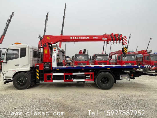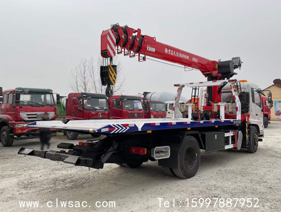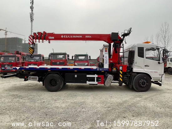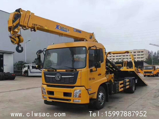10600/1430/5800/3370. ABS型号/生产厂家:3631010-C2000/东科克诺尔商用车制动系统(十堰)有限公司,ABS 8/东科克诺尔商用车制动系统(十堰)有限公司,4460046450/威伯科汽车控制系统(中国)有限公司.该车安装起重、清障装置.用于道路故障车辆,城市违章车辆拖运及抢险救援等.随车起重机型号/最大额定起升载荷(kg)/自重(kg)对应关系为:SQS157/8000/4050.随底盘选装驾驶室.