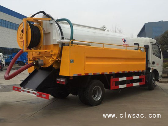该车采用东风多利卡系列底盘,加装高压泵、高压管、自动回位卷盘、高压冲头、真空吸污泵、压力罐体、液压部分、管网系统、真空压力表、油水分离器、视污窗、洗手装置等改装而成,安装朝柴,玉柴,云内等发动机,排放达到国五标准。