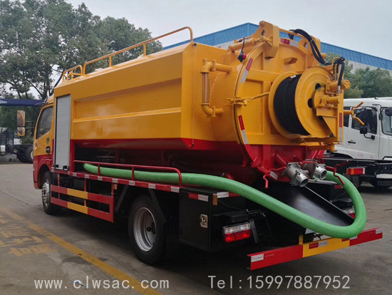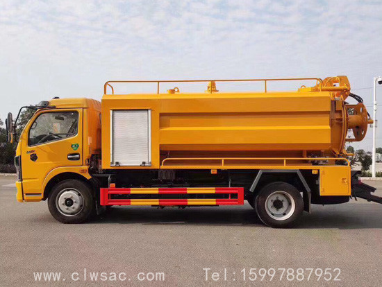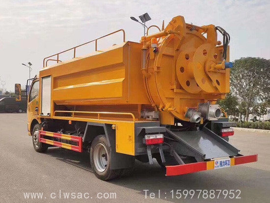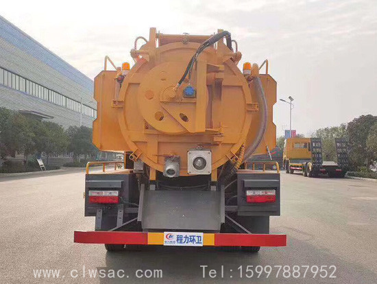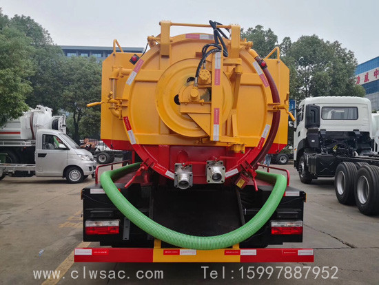 上装配置:清水罐容积:3立方米,污水罐容积:7立方米,罐体材质采用Q235武钢6MM厚碳钢板,标配采用亿丰大功率8吨真空泵,油水分离器,防溢阀,视污管,配一根6米吸污管,罐体封头一次压铸成型,罐体具有举升功能,后门液压开启,配高压泵:天津通洁(选装意大利进口高压泵)压力:22Mpa 、流量:215L/min 、胶管长度:60m、卷管力:1800 N 、胶管内径:φ19 mm、接头型式 :1-10 、卷管速度:0-25m/min 、孔夹角度:15°,25° 推进力:≥180 N 。随车配备10个不同型号高压喷头。1-5号用于管道疏通,6-10号用于管道清洗。配有高压水泵的水罐车,清洗城市下水道的沉积物,疏通下水道。也可用于清洗工业排液管道、壁面等,该车可加装洒水功能兼作洒水、运水和冲洗公路用,紧急时可用于救火。