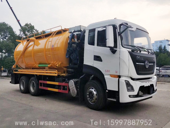 该车采用东风天龙后双桥系列底盘,加装高压泵、高压管、自动回位卷盘、高压冲头、真空吸污泵、压力罐体、液压部分、管网系统、真空压力表、油水分离器、视污窗、洗手装置等改装而成,安装朝柴,玉柴,云内等发动机,排放达到国六标准。