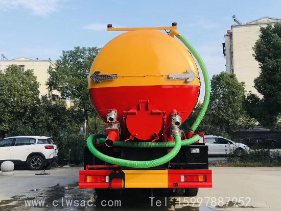 上装配置:清水罐容积:13立方米,污水罐容积:20立方米(清水罐与污水罐可自由分配),罐体材质采用Q235武钢8MM厚碳钢板,标配采用亿丰大功率双10吨真空泵(选装水循环泵),油水分离器,防溢阀,视污管,配一根6米吸污管,罐体封头一次压铸成型,罐体具有举升功能,后门液压开启,配高压泵:天津通洁高压泵(选装意大利进口高压泵)压力:15Mpa 、流量:330L/min 、胶管长度:60m、卷管力:1800 N 、胶管内径:φ19 mm、接头型式 :1-10 、卷管速度:0-25m/min 、孔夹角度:15°,25° 推进力:≥180 N 。随车配备10个不同型号高压喷头。1-5号用于管道疏通,6-10号用于管道清洗。配有高压水泵的水罐车,清洗城市下水道的沉积物,疏通下水道。也可用于清洗工业排液管道、壁面等,该车可加装洒水功能兼作洒水、运水和冲洗公路用,紧急时可用于救火。